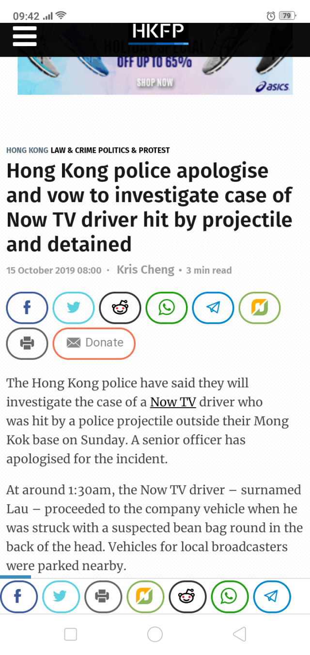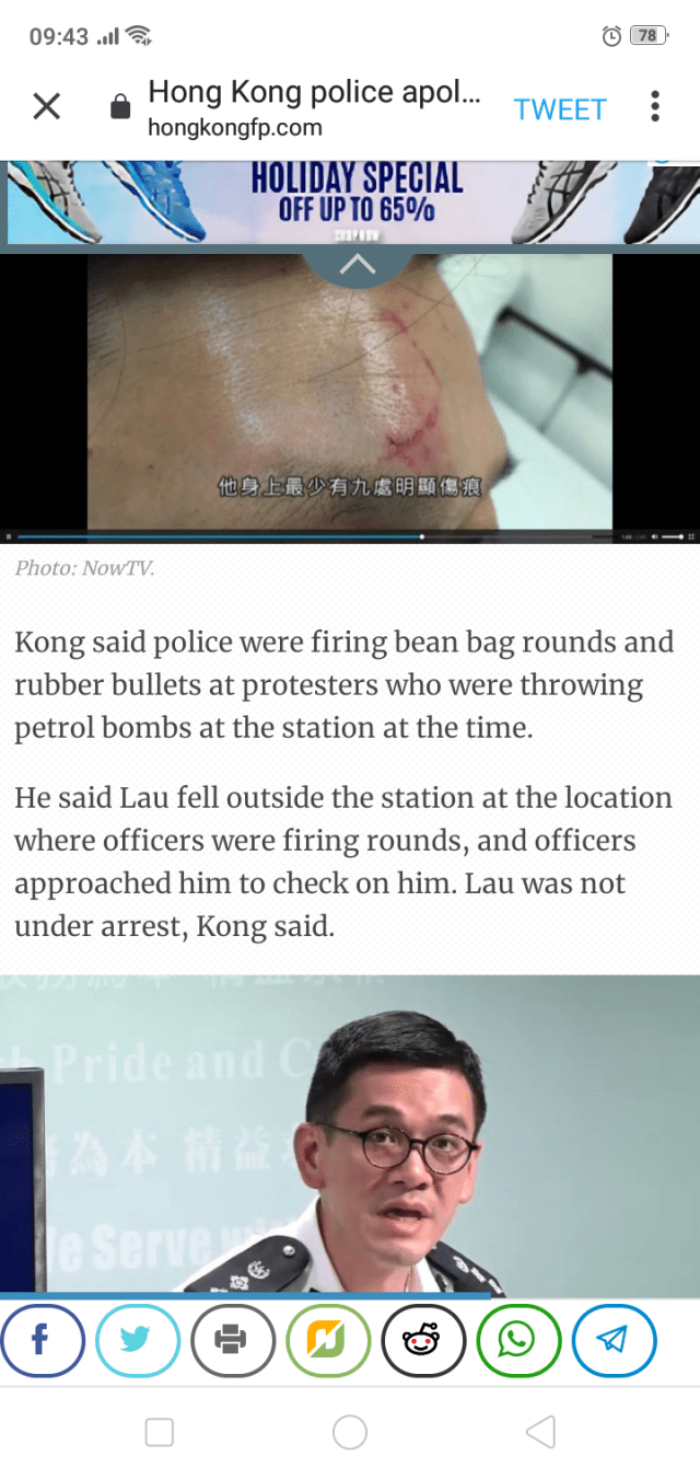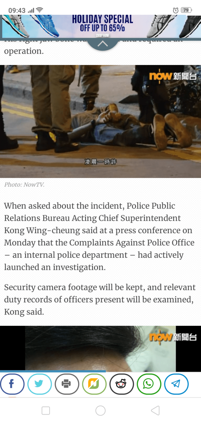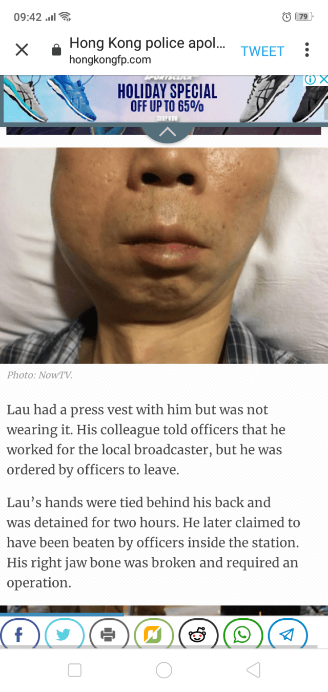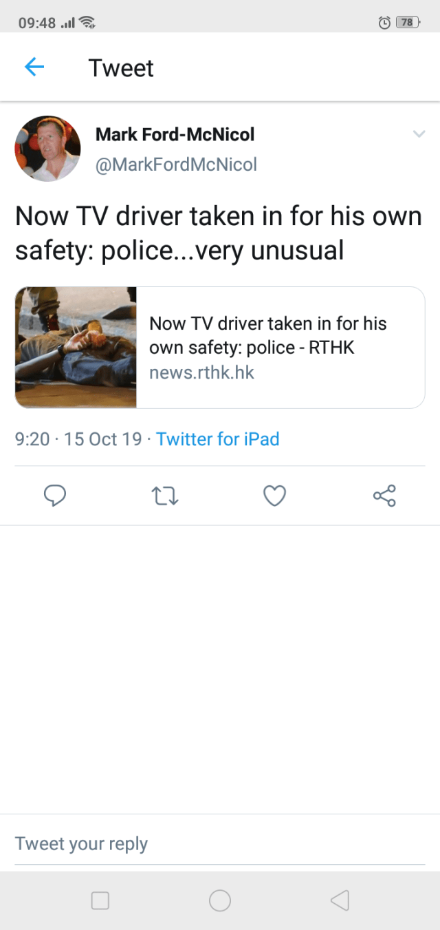 I have to put the 2nd part in comment section due to the limitation on video length. The Now TV driver accuses the police officer of pushing his face against a wall and beating him with batons inside the police station.#FreedomOfThePress #HongKongProtests #PoliceState pic.twitter.com/Fh2v5ZgCIG