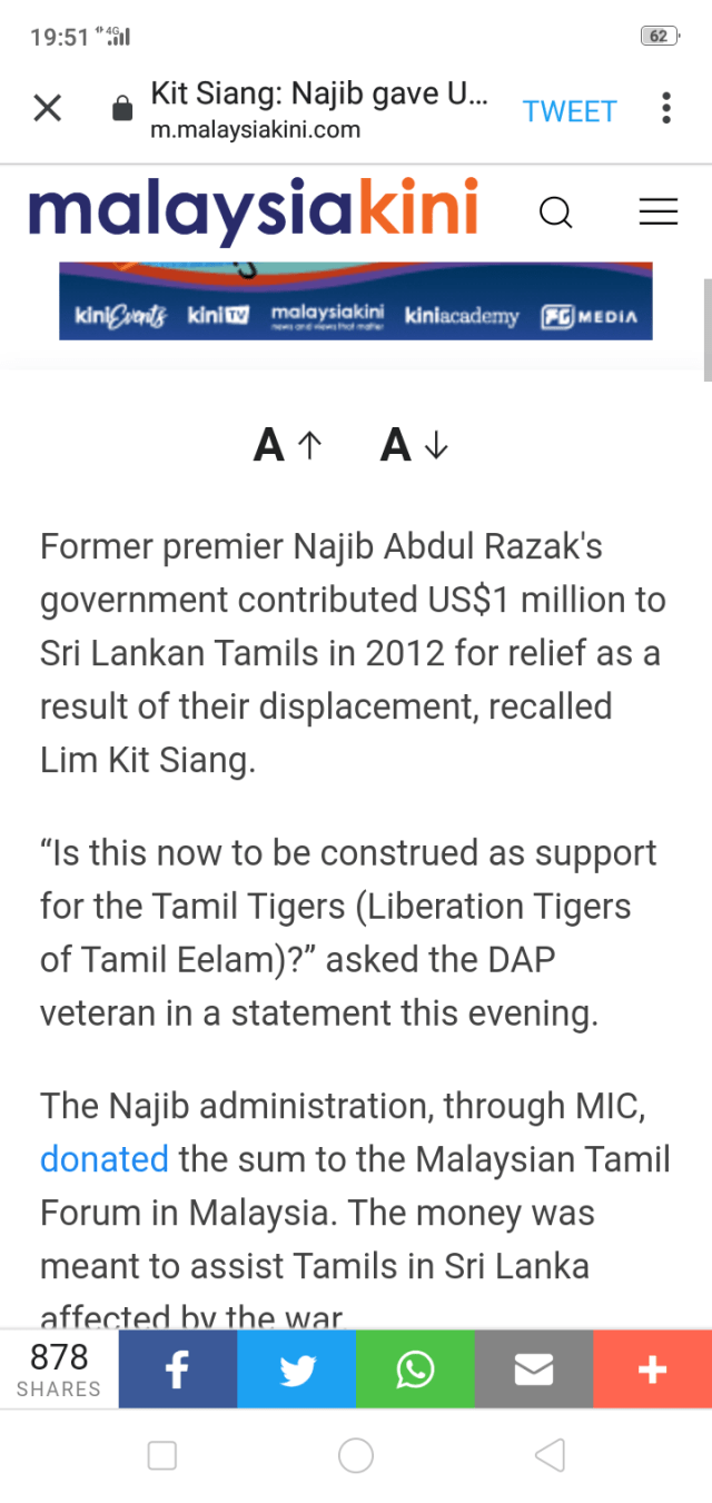 Lim Kit Siang: Najib gave US$1 million to Sri Lanka Tamils, so did he support the LTTE?