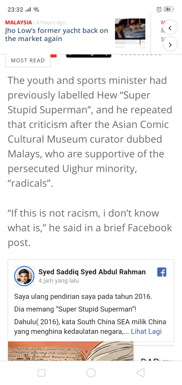 Syed Saddiq calls Superman Hew “super stupid” for racism but didn’t Syed Saddiq attend the super racist Malay Dignity Congress?