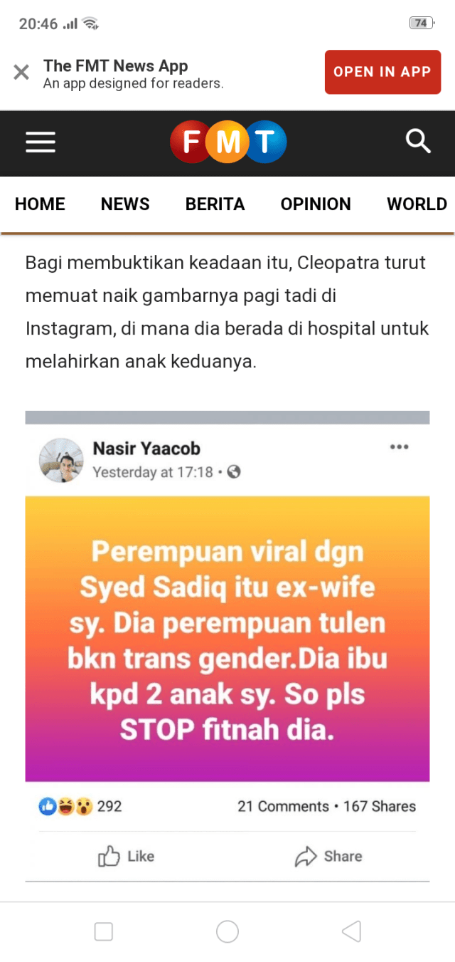 #kualalumpur “Dia bekas isteri saya, ibu kepada dua anak kami dan memang wanita tulen, bukan pondan seperti mana didakwa segelintir warganet,” kata usahawan, Datuk Mohd Nasir Yaacob, 46. https://t.co/TJ4GsKVp2K