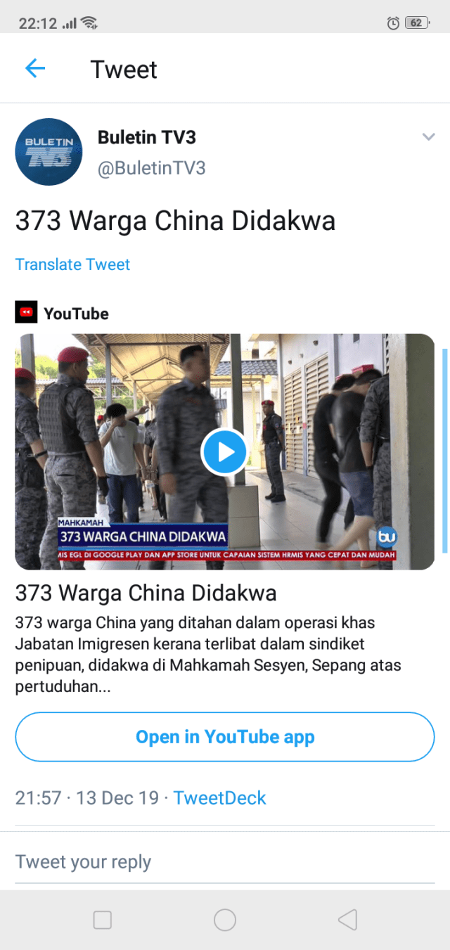373 Warga China Didakwahttps://t.co/mq1UB1xs4y — Buletin TV3 (@BuletinTV3) December 13, 2019