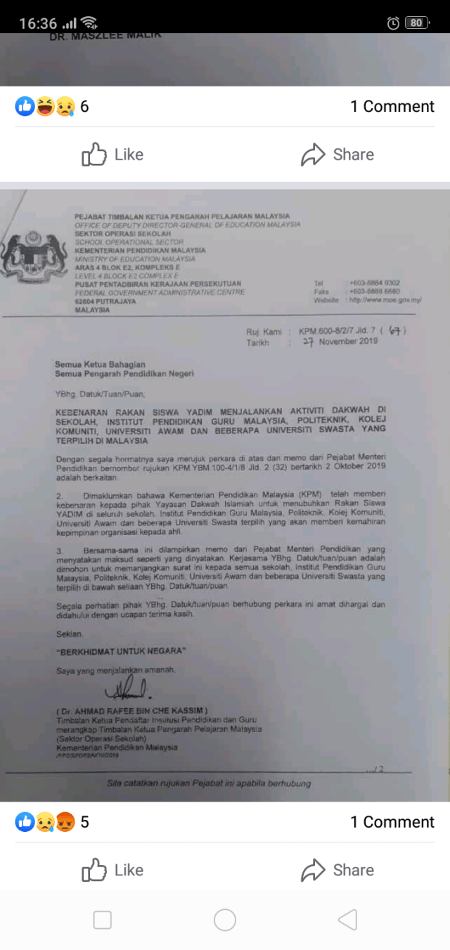 .MORE ISLAMIZATION/DAKWAH IN OUR EDUCATIONAL INSTITUTIONS??These were forwarded to me and I am appalled to see these instructions coming from the Ministry of Education.It is unbecoming for the state to allow this in our educational institutions. Currently, some schools dont even allow non-Muslims to have their religious societies like Christian and Buddhist. This is really taking the cake. I really think Ministry of Education should be changed to Arabic Ministry of Education or Ministry of Dakwah.