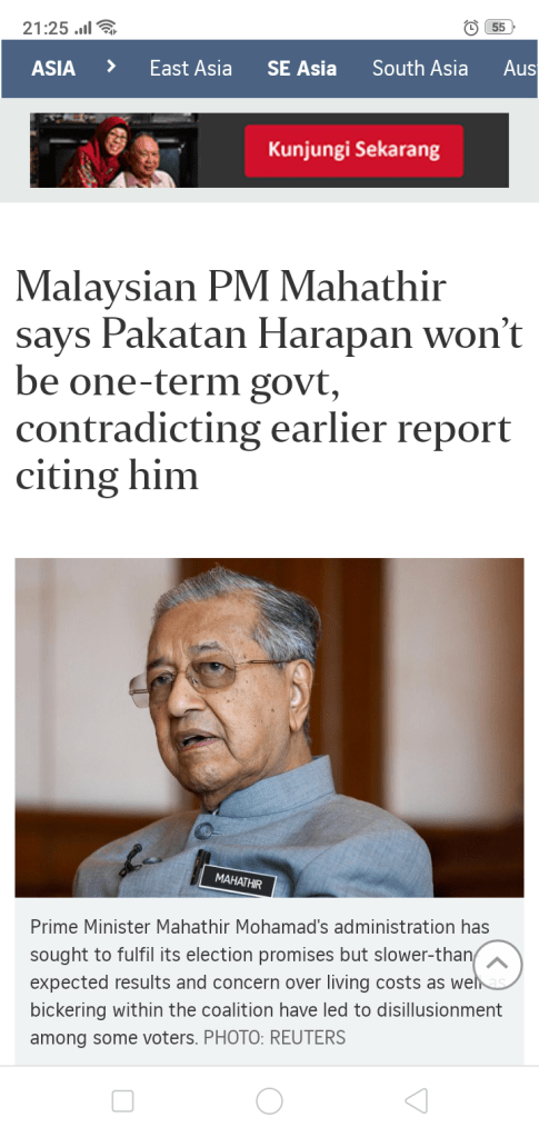 “I do not think that Pakatan Harapan would be a one-term government,” Tun Dr Mahathir told reporters in the resort island of Langkawi on Monday (Jan 20).