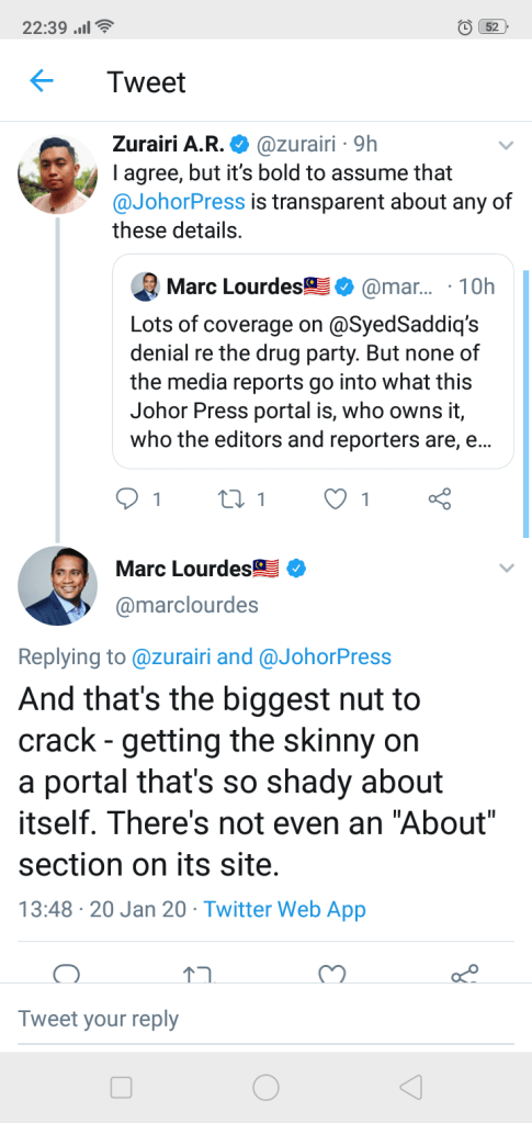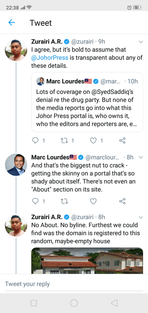 Laporan polis akan dibuat dan tindakan undang-undang akan diambil terhadap penyebar berita tidak benar yang mengaitkan YB @SyedSaddiq di dalam artikel "Syed Saddiq Sebenarnya Ada di Parti Dadah Tapi……" diterbitkan oleh Johor Press. pic.twitter.com/xnNipy1lX7