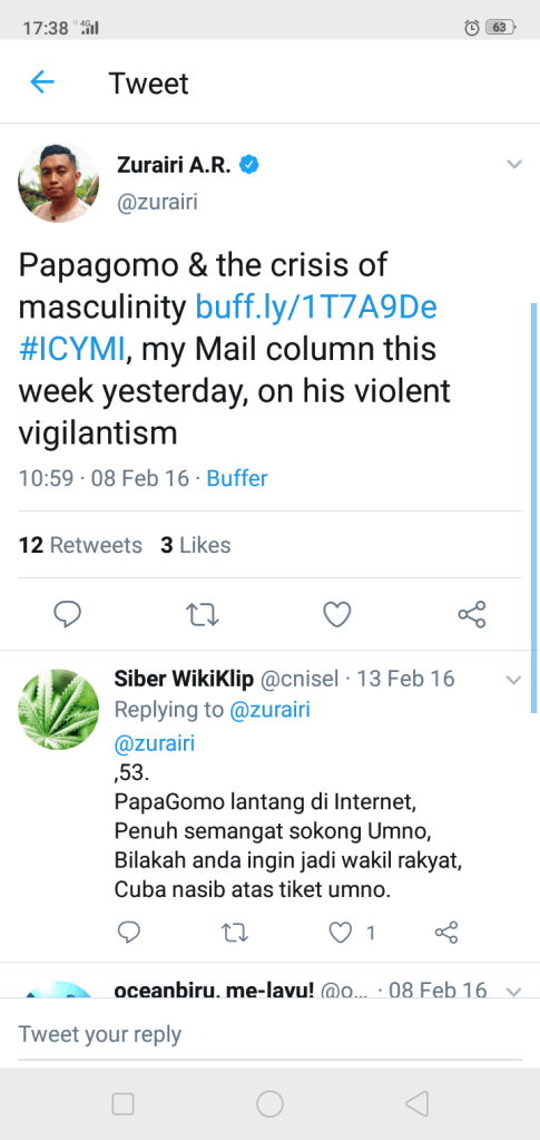 But the former police officer was disgraced after he lost a defamation suit against then Opposition Leader Anwar Ibrahim. As Papagomo, Wan Azri had accused Anwar of a sex scandal, and therefore immoral and unfit for public office.