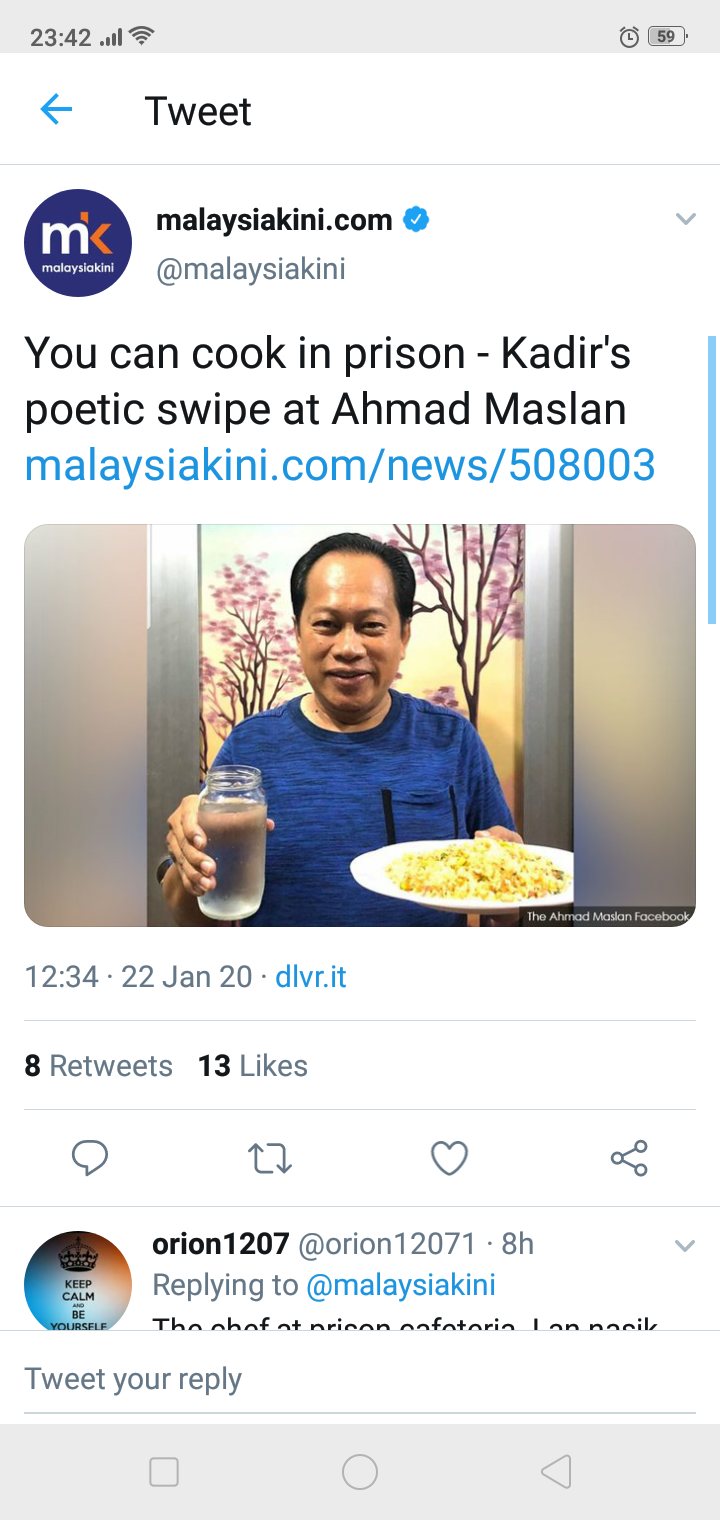 Veteran journalist A Kadir Jasin has penned a poem in response to Ahmad Maslan’s poetic defence against the charges of failing to declare RM2 million which he received from former prime minister Najib Abdul Razak to the Inland Revenue Board (IRB) and providing a false statement to MACC.
