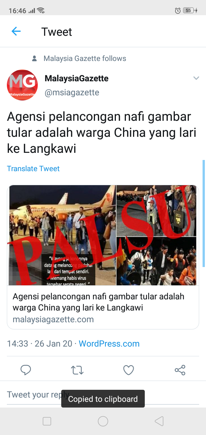 — MalaysiaGazette (@msiagazette) January 26, 2020