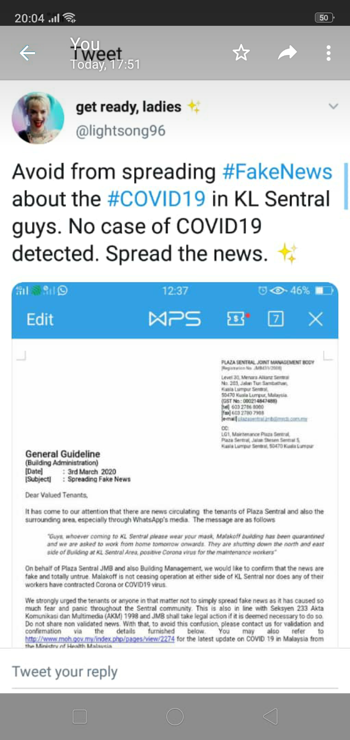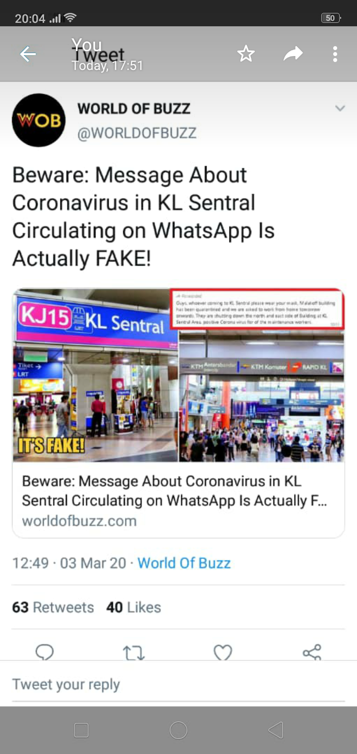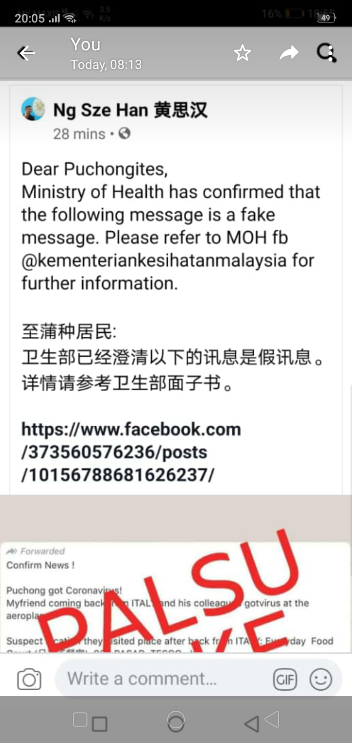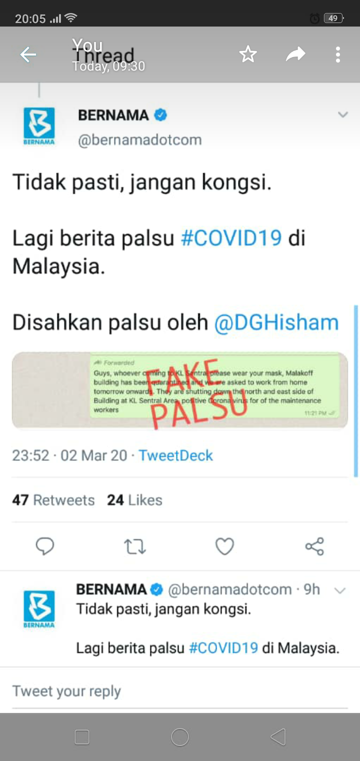 Jangan tularkan berita/ info palsu. Anda boleh disiasat. pic.twitter.com/wwD39AjUl8