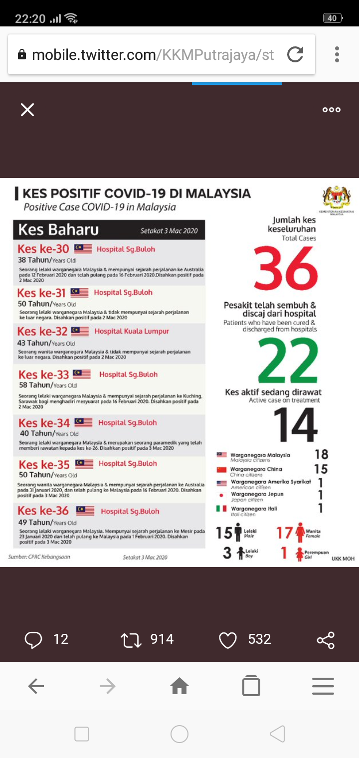 — KKMalaysia🇲🇾🩺❤️ (@KKMPutrajaya) March 6, 2020