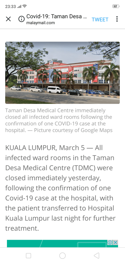 COVID-19: Taman Desa Medical Centre closes all infected ward rooms https://t.co/j6qmPIxp8E