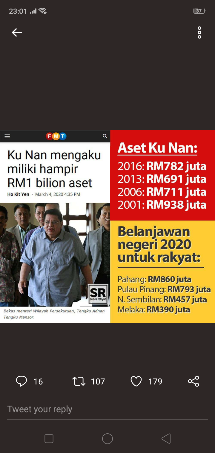 “Tengku Adnan confirmed that he had declared to the PM in 2001 that he had total assets valued at RM938,643,566.16 and that he had made similar declarations in 2006 of his total assets being worth RM711,325,822 and in 2013 at RM691,770,649 and finally at RM782,748,061 in 2016.” https://t.co/wXdxnOEeca