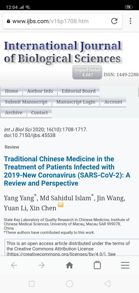 Chinese traditional medicine, recipes used to treat Covid-19 in Wuhan
