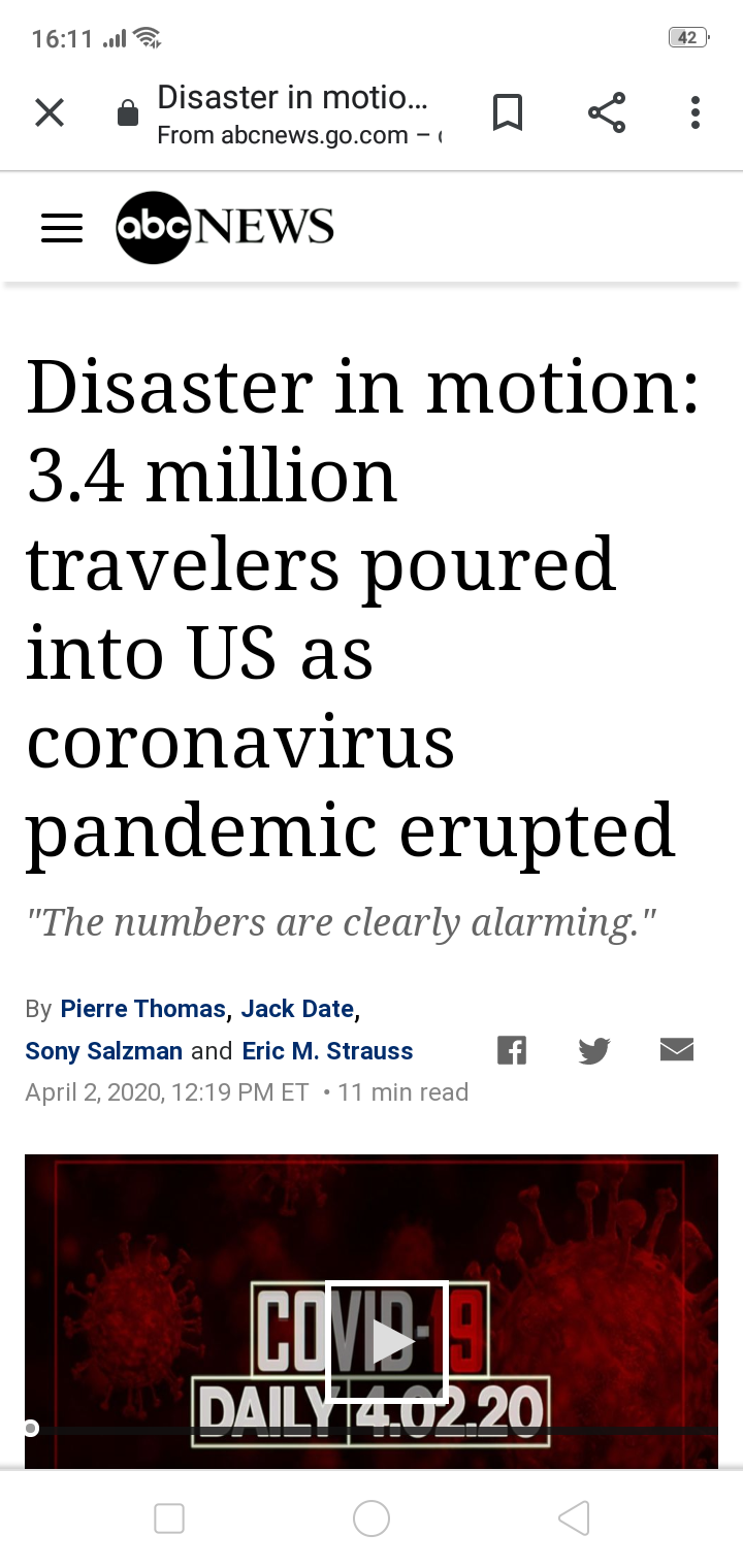 https://abcnews.go.com/Politics/disaster-motion-34-million-travelers-poured-us-coronavirus/story?id=69933625