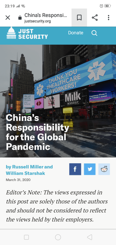 China’s Responsibility for the Global Pandemic