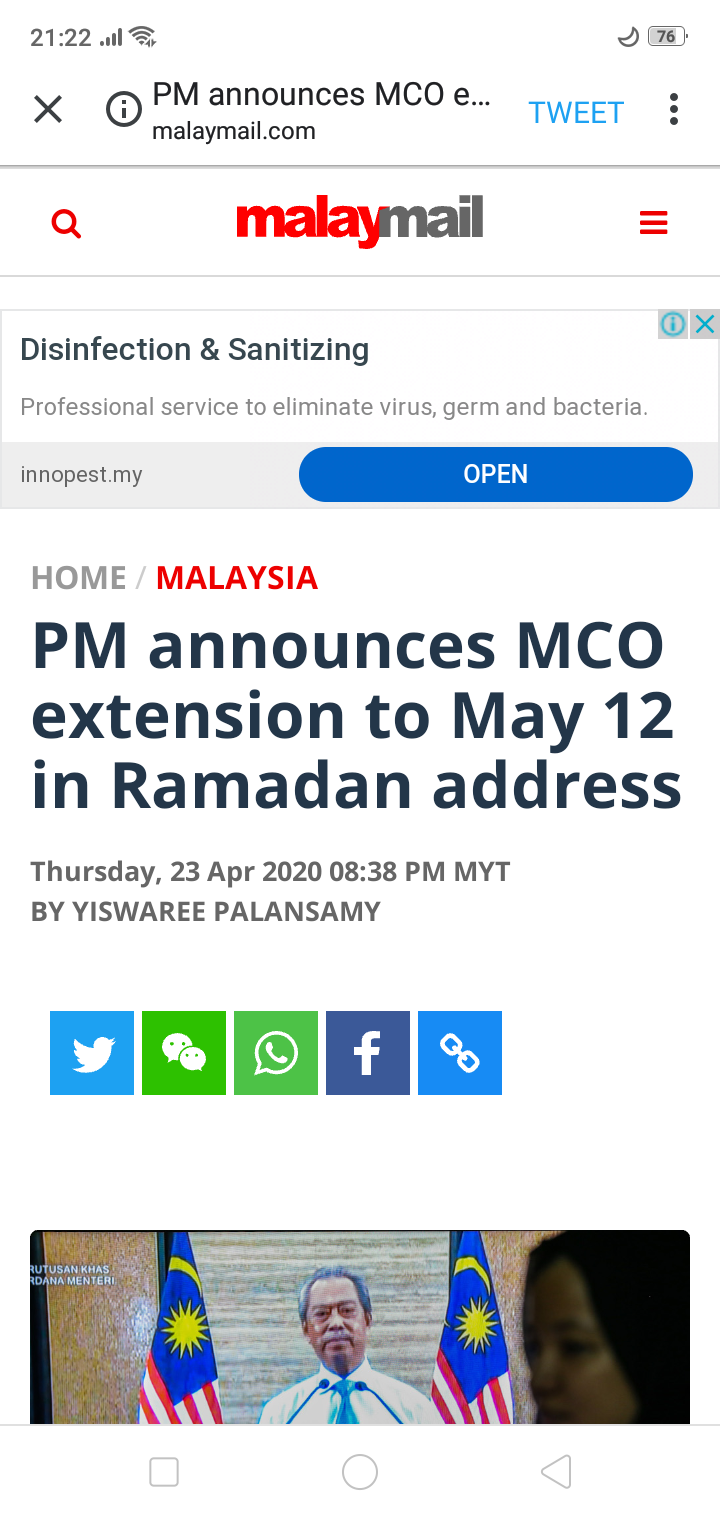 Muhyiddin announces MCO extension in Ramadan address https://t.co/BlSGZcEyZL