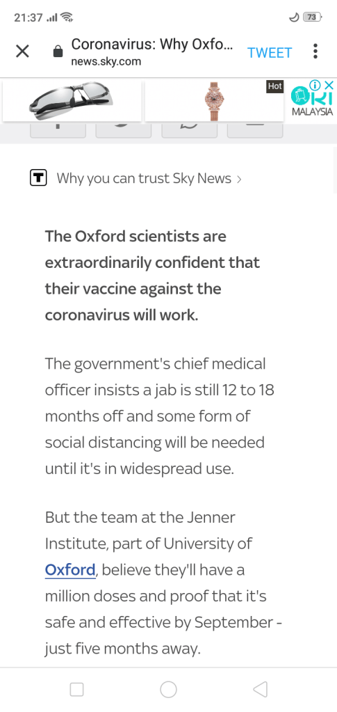 Oxford university researchers believe they will have a million doses of a #coronavirus vaccine – and proof it's safe and effective – by September https://t.co/b1ySXSACzt