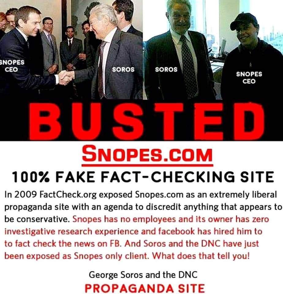 “FactCheck.org exposed Snopes.com as an extremely liberal propaganda site with an agenda to discredit anything that appears to be conservative,” the post says. “Snopes has no employees and its owner has zero investigative research experience and Facebook has hired him to fact check the news on FB. And Soros and the DNC have just been exposed as Snopes only client. What does that tell you! George Soros and DNC propaganda site.”