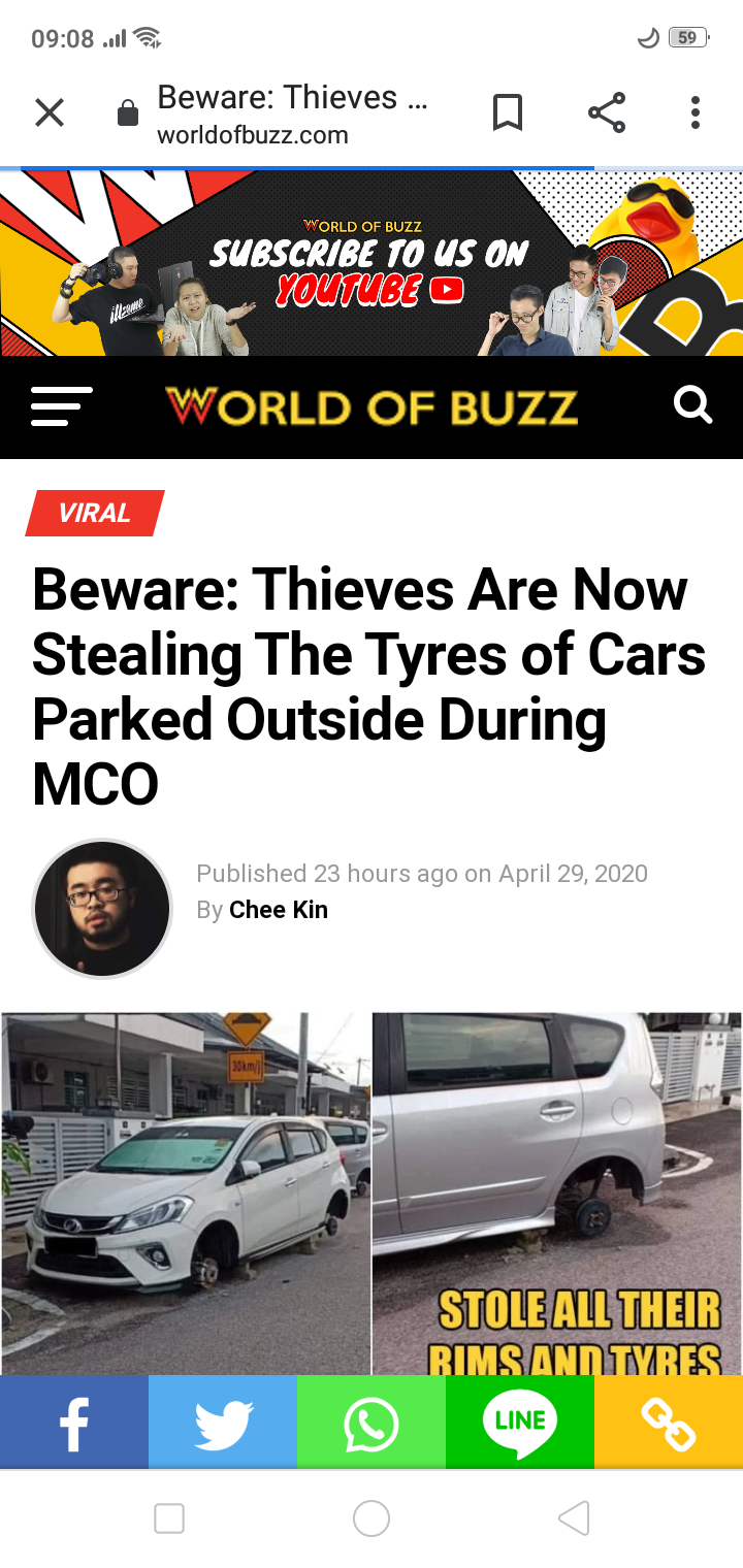Beware: Thieves Are Now Stealing The Tyres of Cars Parked Outside During MCO