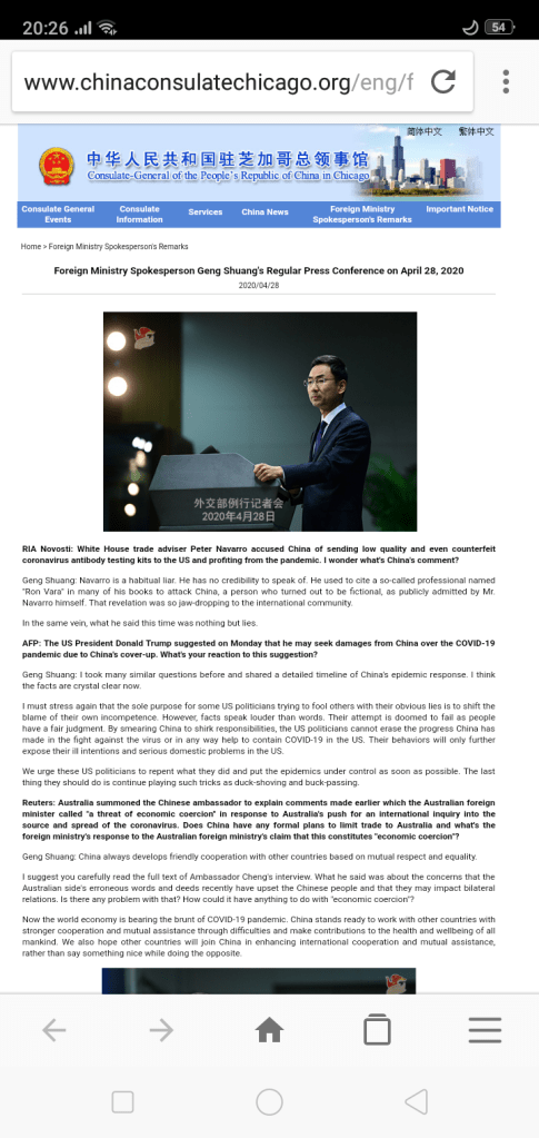 Geng Shuang’s answer is: Viruses are the common enemy of all mankind, and may appear at any time and anywhere in the world. Like other countries, China has been attacked by the new coronavirus. It is the victim, not the perpetrator, nor is it a “collaboration” of the virus.