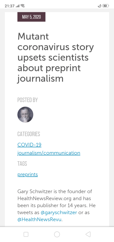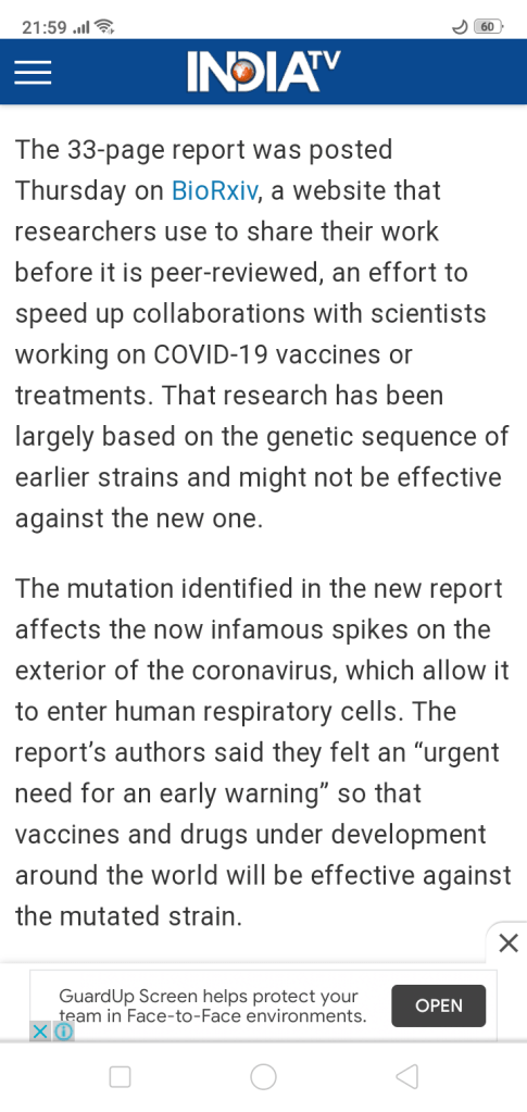 The report is cited in bioRxiv. It points out that “these are preliminary reports that have not been peer-revieved”.