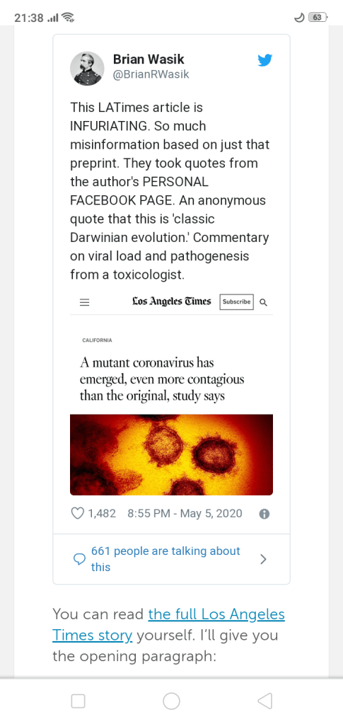 This type of reporting on #SARSCoV2 #COVID19 #coronavirus makes my blood boil. There is no evidence that the dominant strain is such because it is "more contagious"https://t.co/IesYkQetSS