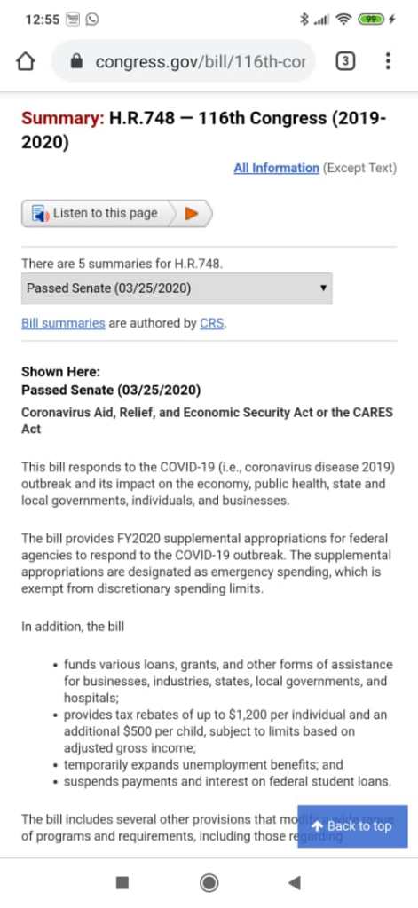 I obtained the following from the website, congress.gov/bill/116th-congress/house-bill/748/summary/00. Please judge for yourself if what I found is authentic, reliable and the truth.