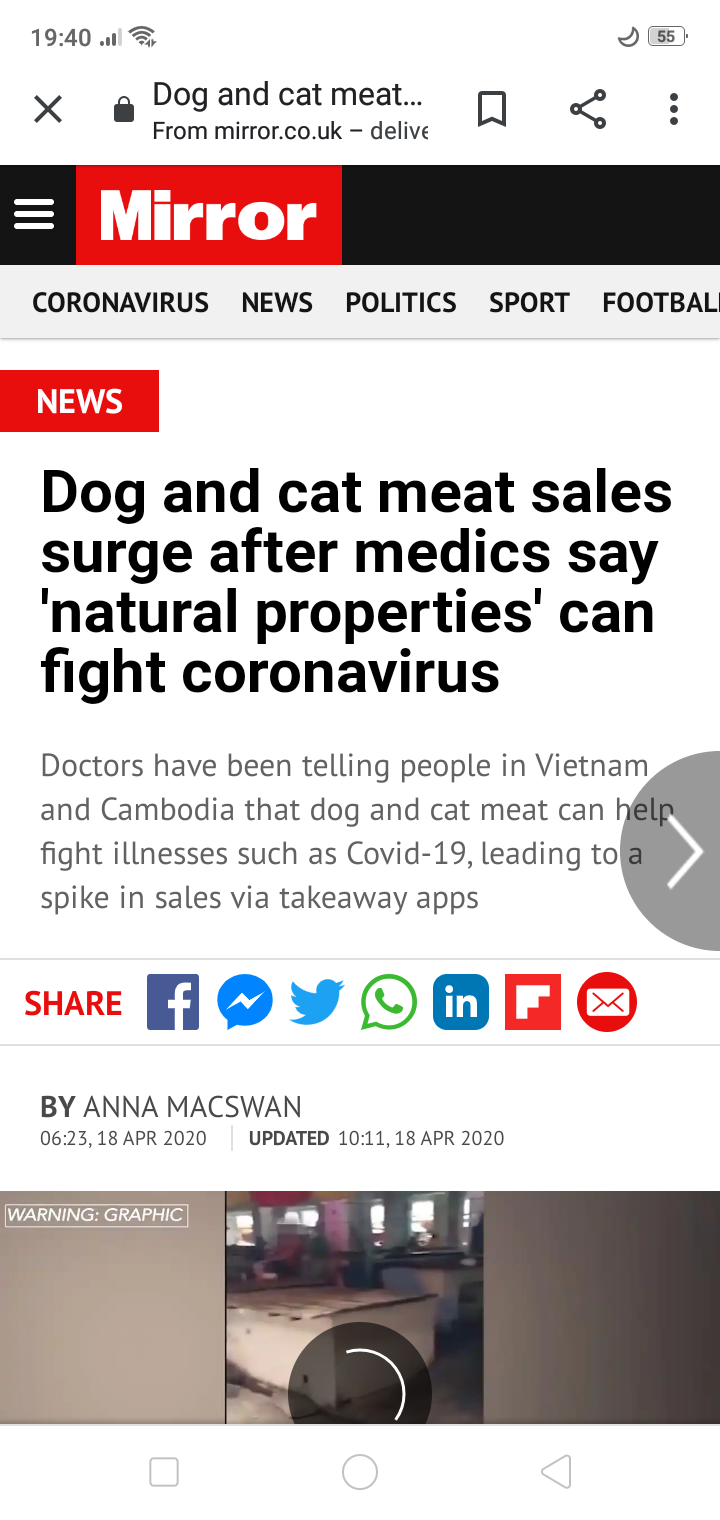 Coronavirus causes dog and cat meat sales ‘to surge’ in Vietnam and Cambodia https://t.co/ZGzmws8B7i