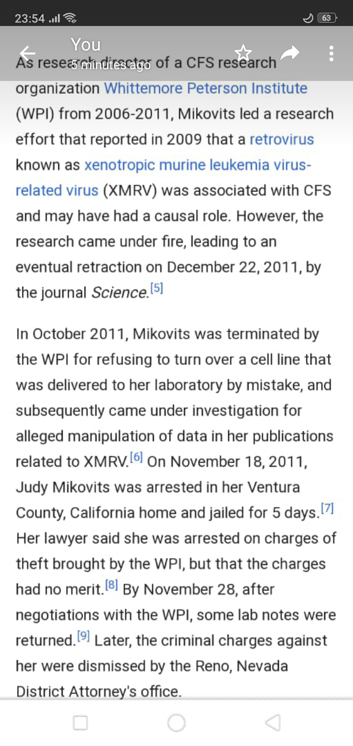 Mikovits is the author on a now-retracted Science paper suggesting a link between a virus known as XMRV and chronic fatigue syndrome, which has no known cause. She alleged that she was fired from the Whittemore-Peterson Institute for blowing the whistle on her former colleague’s activities, and that the defendants then colluded to imprison and defame her.