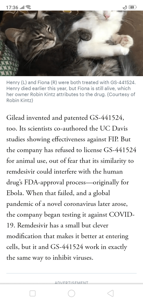 Sick cats, GS-441524, Remdesivir, Covid-19 and Gilead…