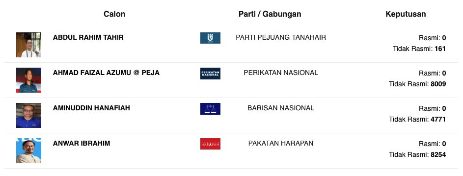 🟡UNOFFICIAL: 11:47pm: PH candidate Anwar is currently leading with 26,369 votes in a four-corner fight for the P63 Tambun seat. ⁰⁰